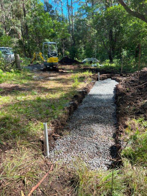 As groundwater accumulates in the surrounding soil, it naturally flows into the gravel trench, enters the perforated pipe, and is redirected to a designated discharge point, away from problematic areas. This system operates efficiently beneath the ground and does not depend on visible grates or channels, making it especially advantageous in clay-heavy soils, which are prevalent in Wollongong and the wider Illawarra region.